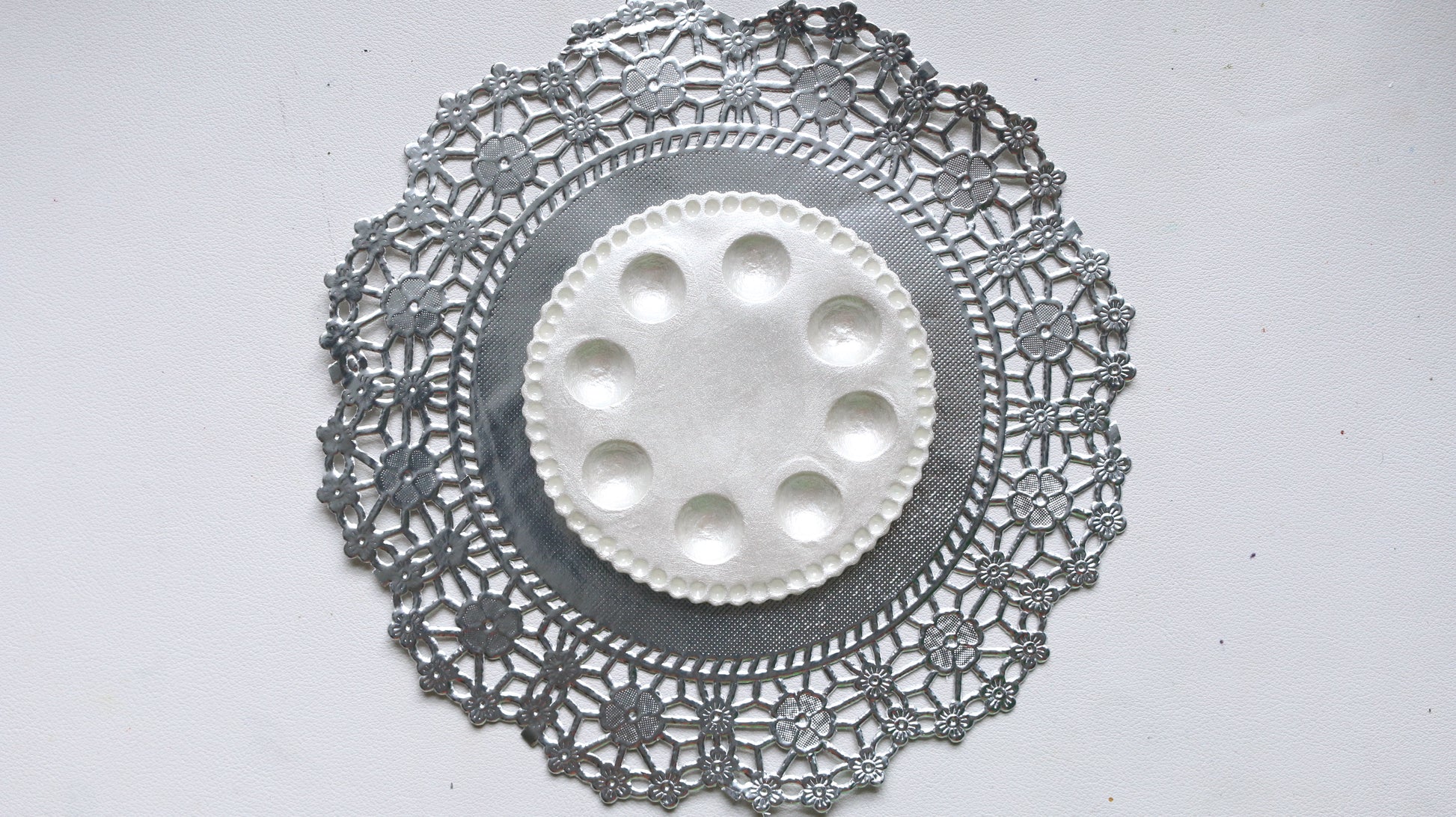 Pearlescent white air dry clay, varnished watercolour mixing dish. Large: 9.3cm in diameter. Avoid staining colours!
