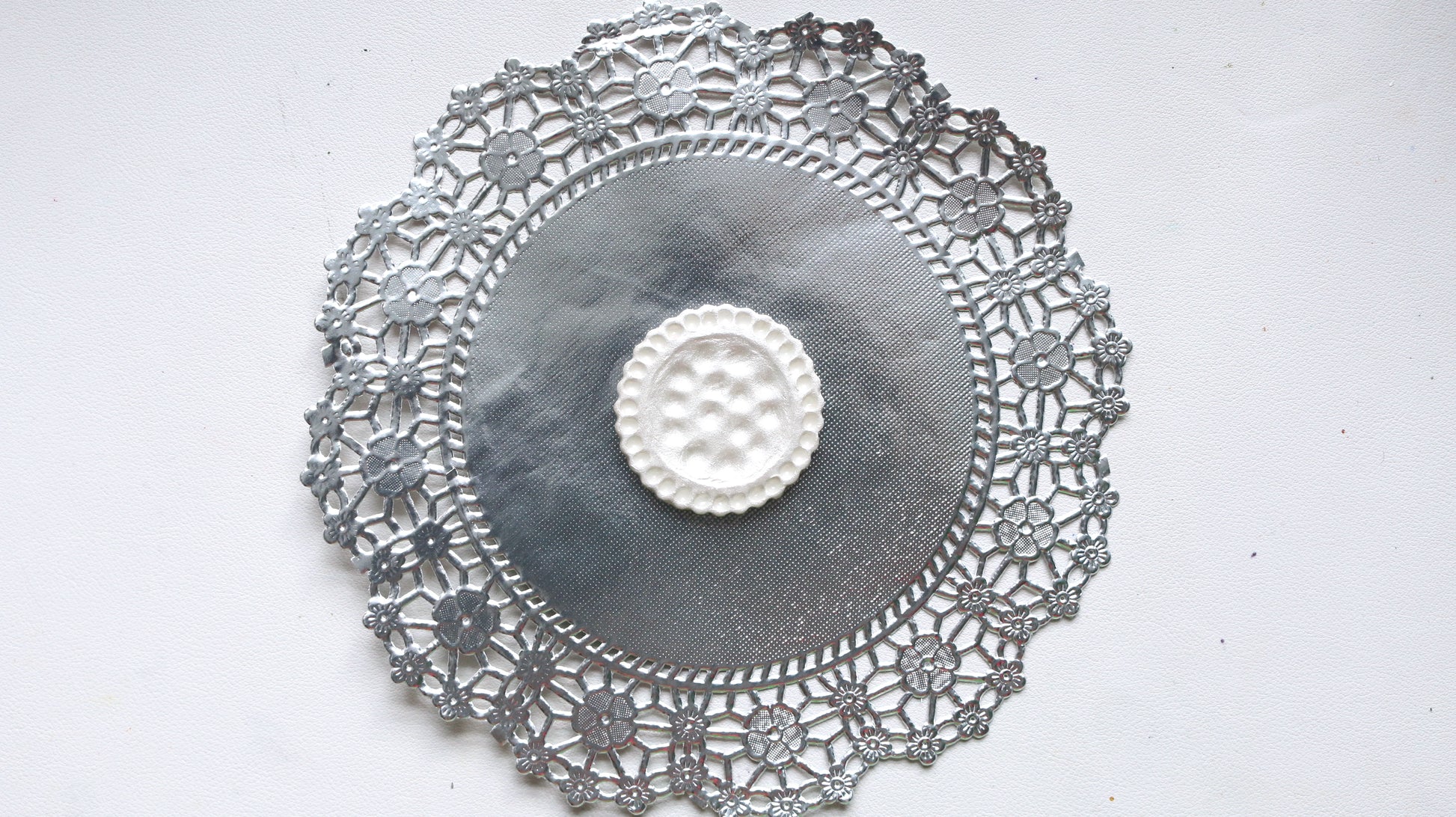 Pearlescent white air dry clay, varnished watercolour mixing dish. Mini: 4.7cm in diameter. Avoid staining colours!